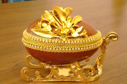 Decorated eggs with wing of Buprestid.